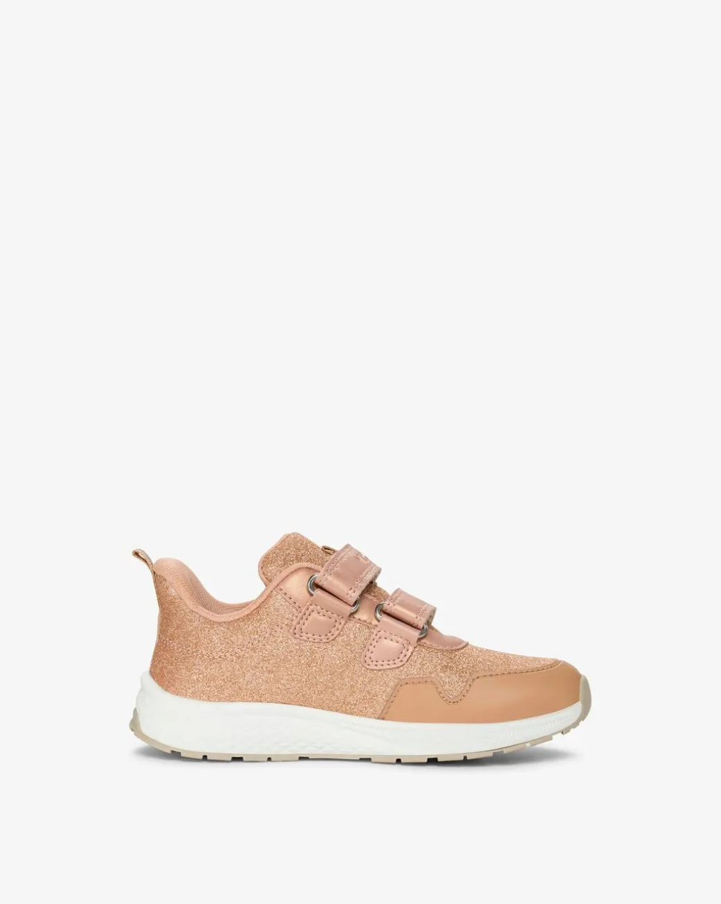 Ge ditt barn lite studs i dojan och glimrande detaljer med Bouncy Glitter. När solen skiner, kommer barnen att älska den glittriga överdelen som är försedd med hållbara förstärkningar. De kommer också att uppskatta dragfliken och häldesignen som är enkel att ta på och av, samt de dubbla kardborrebanden som gör att man snabbt och enkelt kan justera passformen. Undertill dämpar en lätt EVA-mellansula varje steg, och en perforerad Airflow-innersula bidrar till att hålla fötterna fräscha. En yttersula i gummi ger utmärkt grepp på alla underlag.