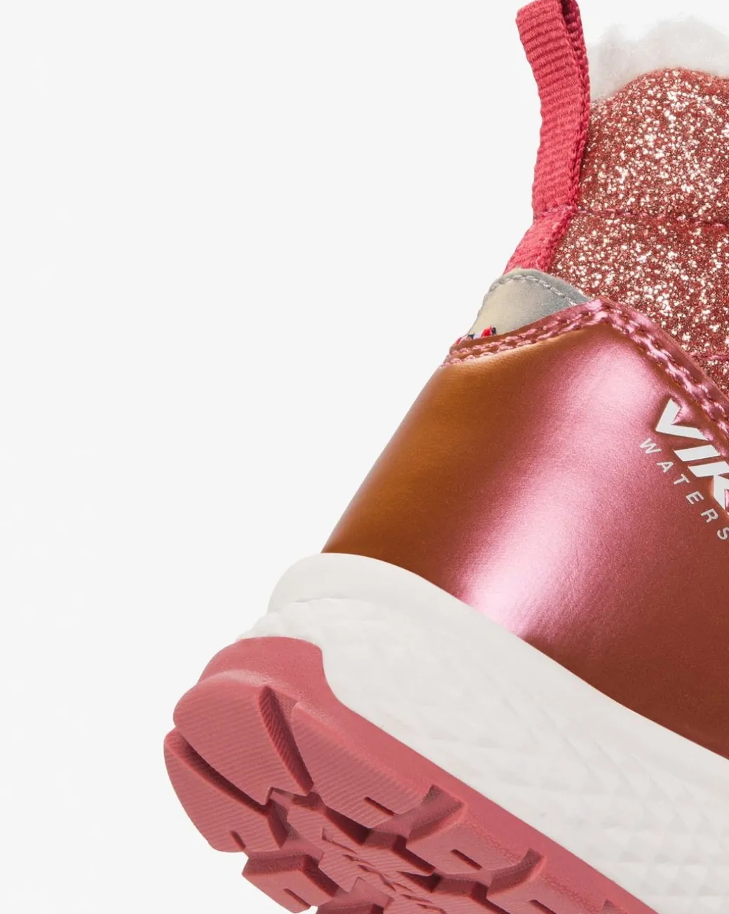 Utrusta ditt barn för deras vardagsäventyr med en sko som erbjuder både skoj och komfort. Den glittriga och skimrande ovandelen har elastiska snören och ett kardborreband för en enkel, gnistrande och personlig passform. Vikings Watershield-membranet stänger ute fukt, medan ett varmt, isolerande lager håller tillbaka kylan. En gummiyttersula ger ett bra grepp, och plats för fotband hjälper kläderna att hålla sig på plats!